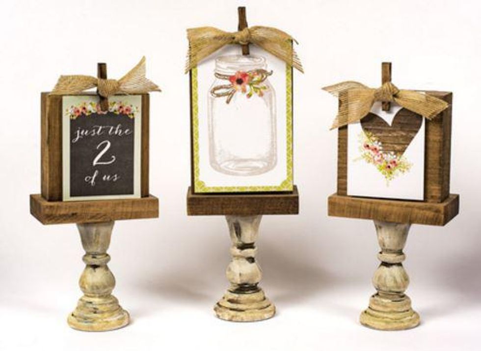 Use wood glue to adhere the clothespin to the wood block. While you allow the wood pieces to set, you may visit our free embellishments area and scrapbook papers to further personalize/enhance frames