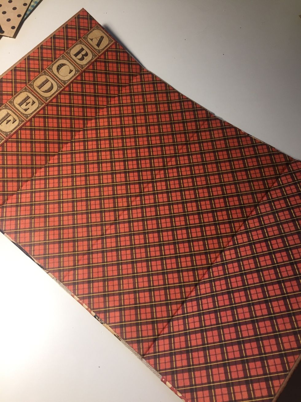 For the back side, cut a piece of ABC paper and and adhere to the back case