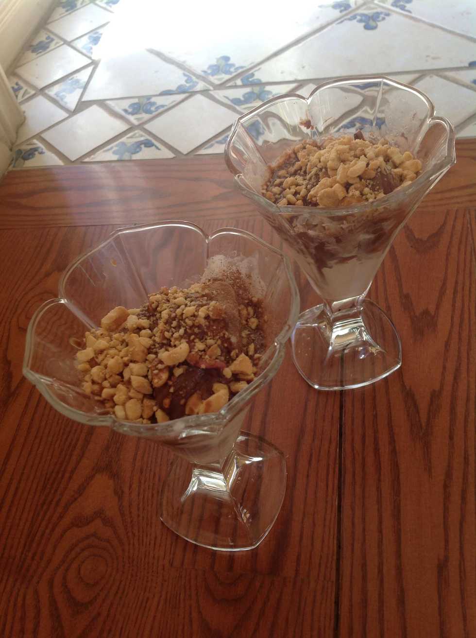 Choose your ice creamPour it in a nice glassThen, sprinkle hot chocolate powder on topAdd the nutella on topCrush the peanuts in another bowlAnd sprinkle it tooThere you go (: