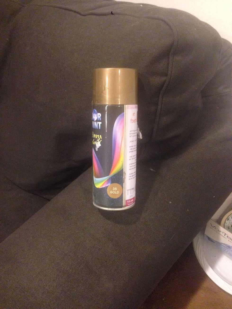Paste with paper tape the logo that you made on top of the art and spray it with color gold