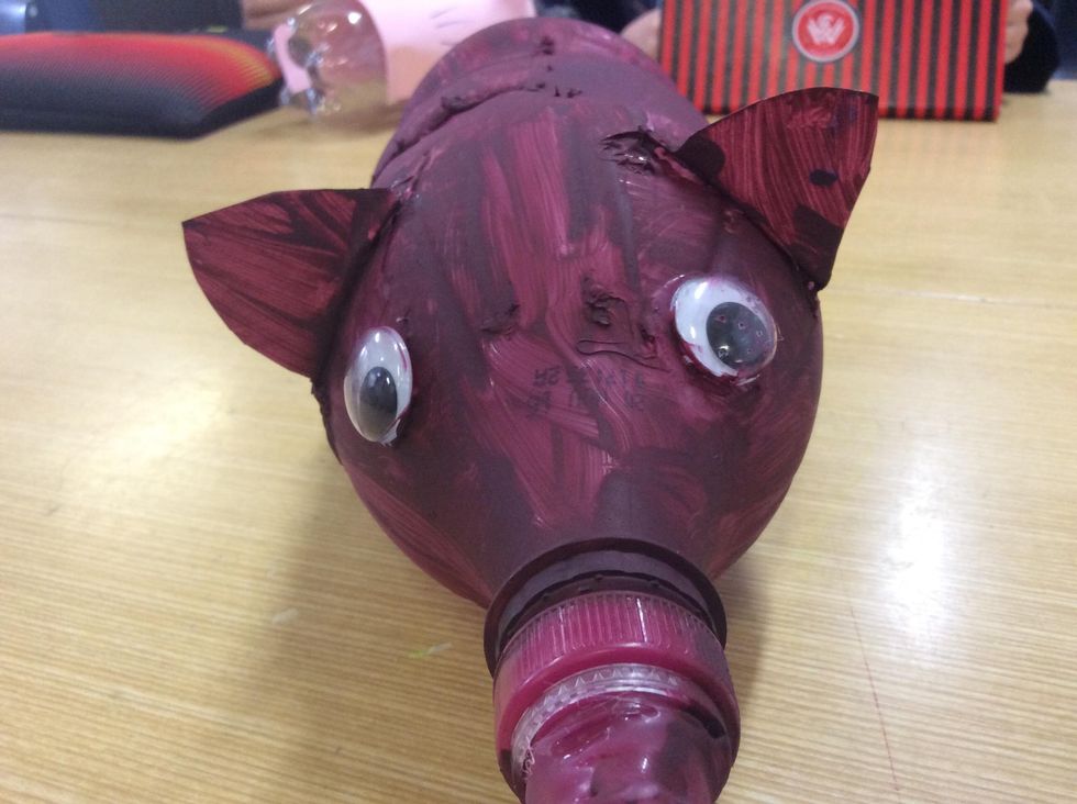 Make the pig any colour you desire but I chose to make mine a magenta colour. Now paint your plastic bottle fully.
