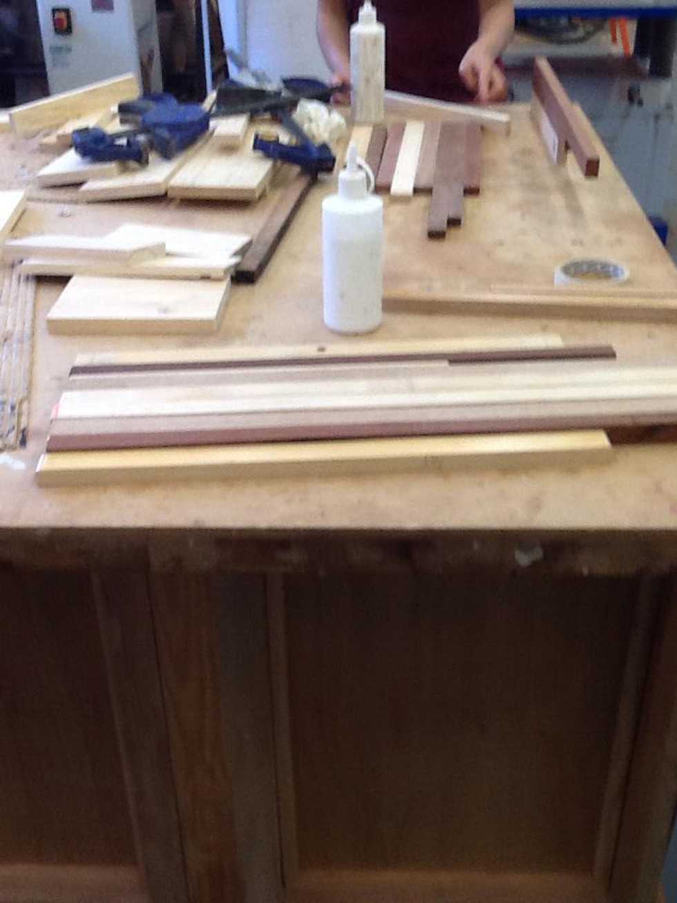 Squirt a small amount of glue between the planks and clamp in place