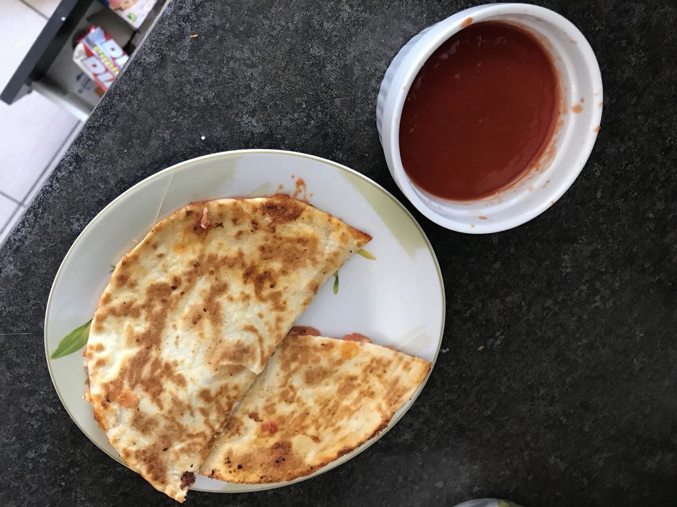 Add quesadilla and, cook on both sides until golden brown