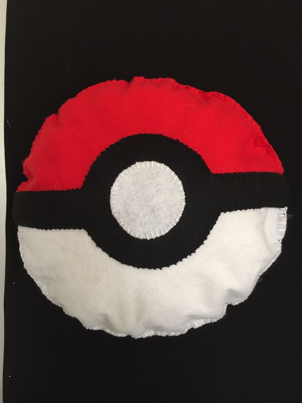Nåla fast den svarta delen mitt på den röd-vita cirkeln. Sy fast den med FÖRSTYGN eller KASTSTYGN. Bestäm tillsammans med din lärare.