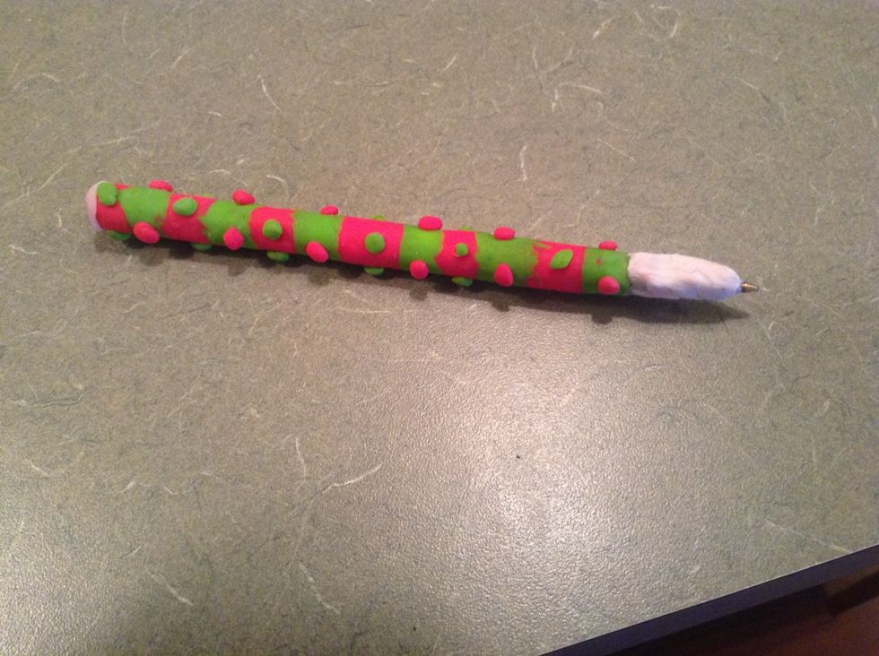 You will need any 2 polymer clay colors, a pen, and an oven set at 275 degrees