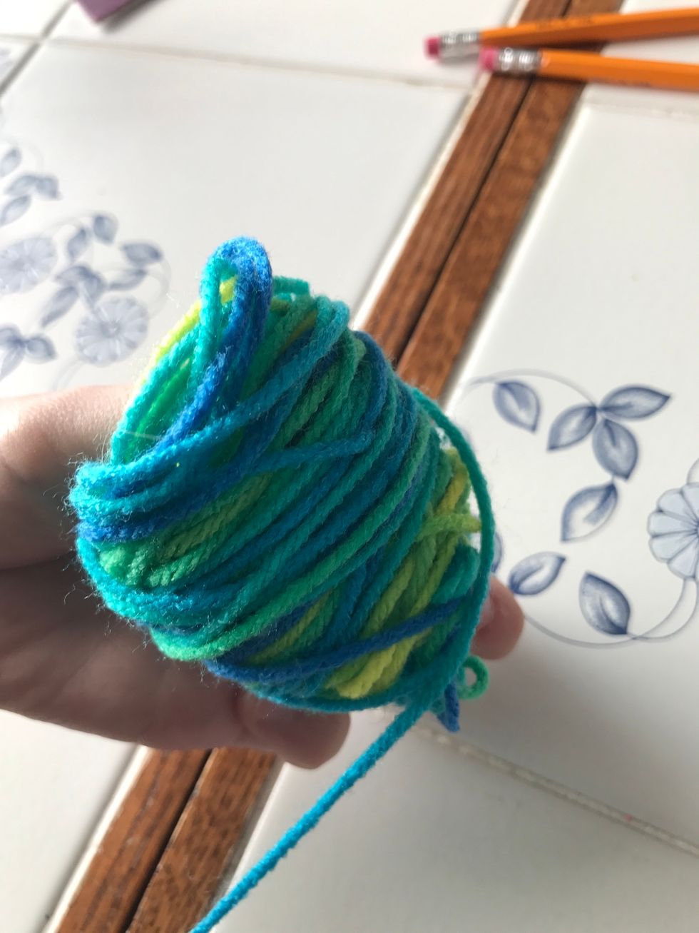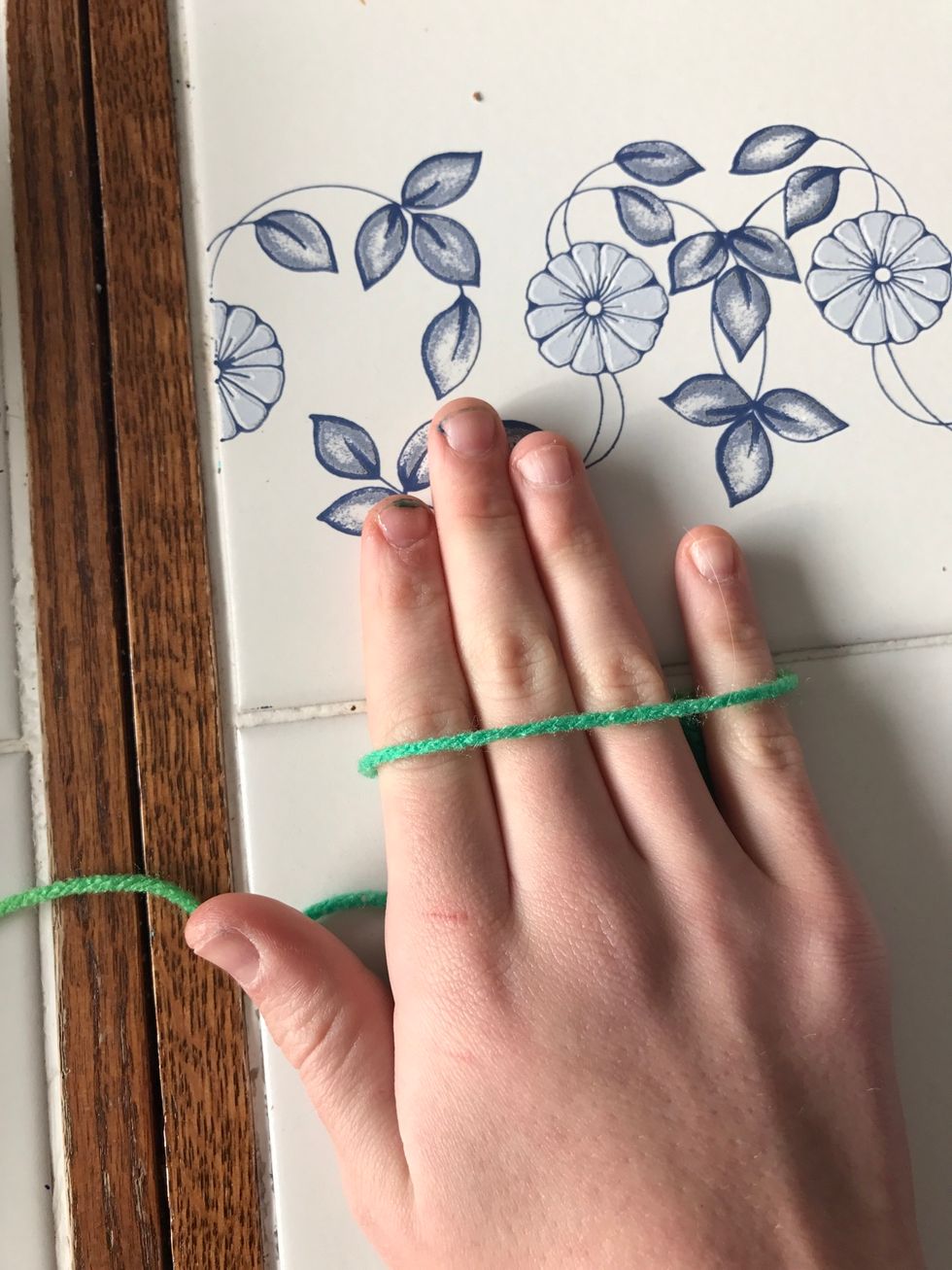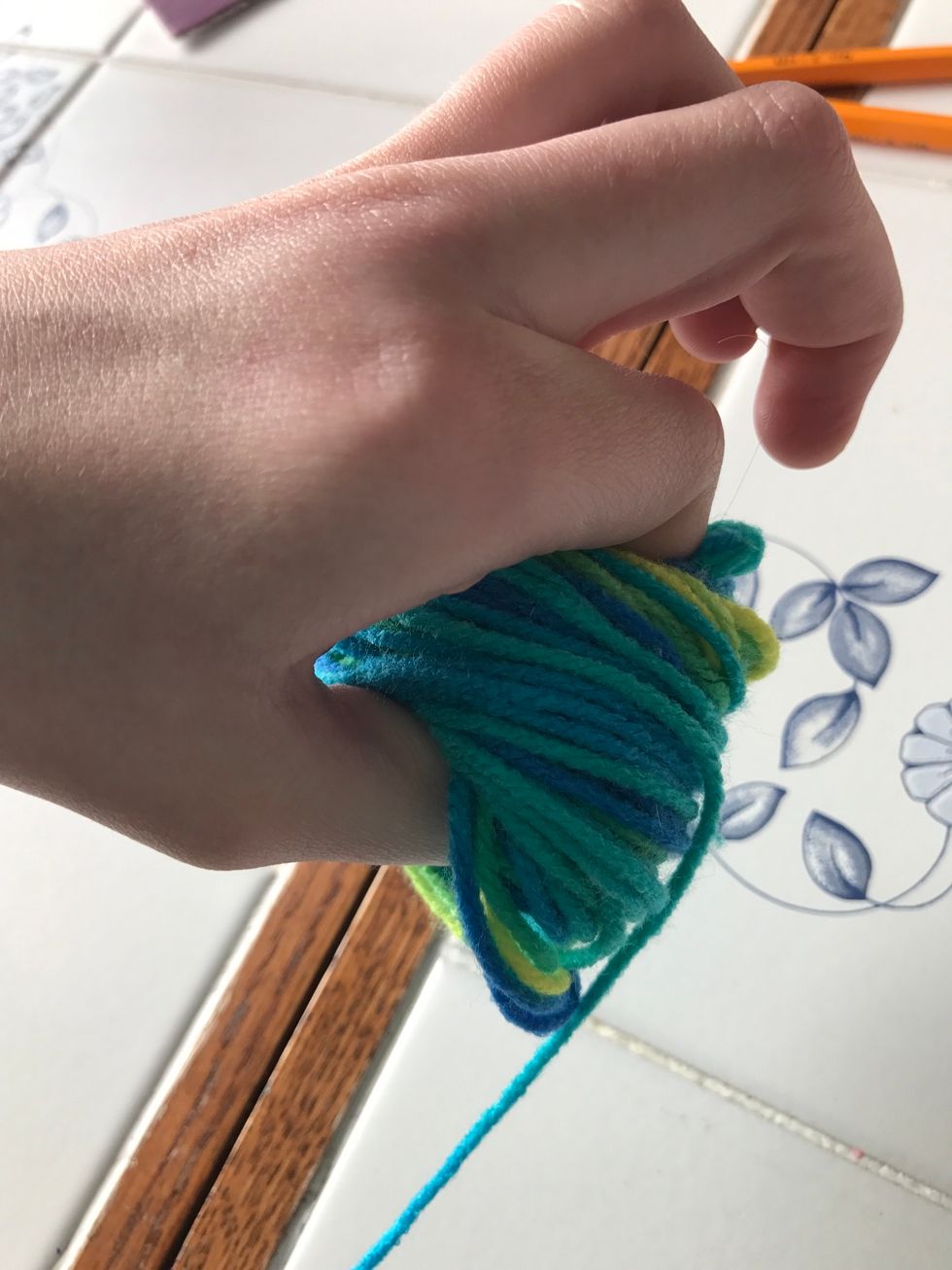 When finished pinch the yarn off your fingers, holding it with your thumb and pointer finger