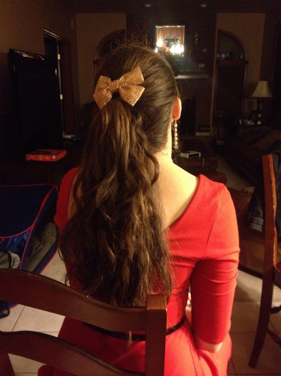 Take half of your hair, or as much as you would normally put into a half up-do, and put it into a ponytail.