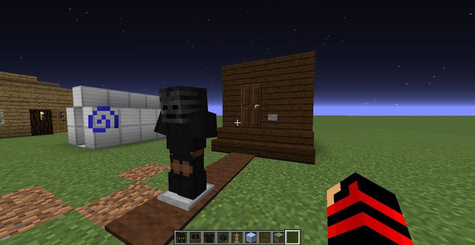 now, in front of slime block, place a armor stand and put skull and leather armor on it to make it look like some mob. (I apologize for that potion effect :( it is night vision. nothing special...)