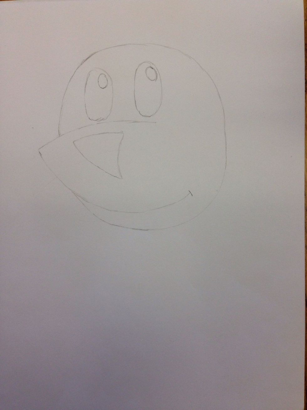 Step #3 Draw a small curved triangle (the nose) in step 1. Also, add oval eyes above the nose.