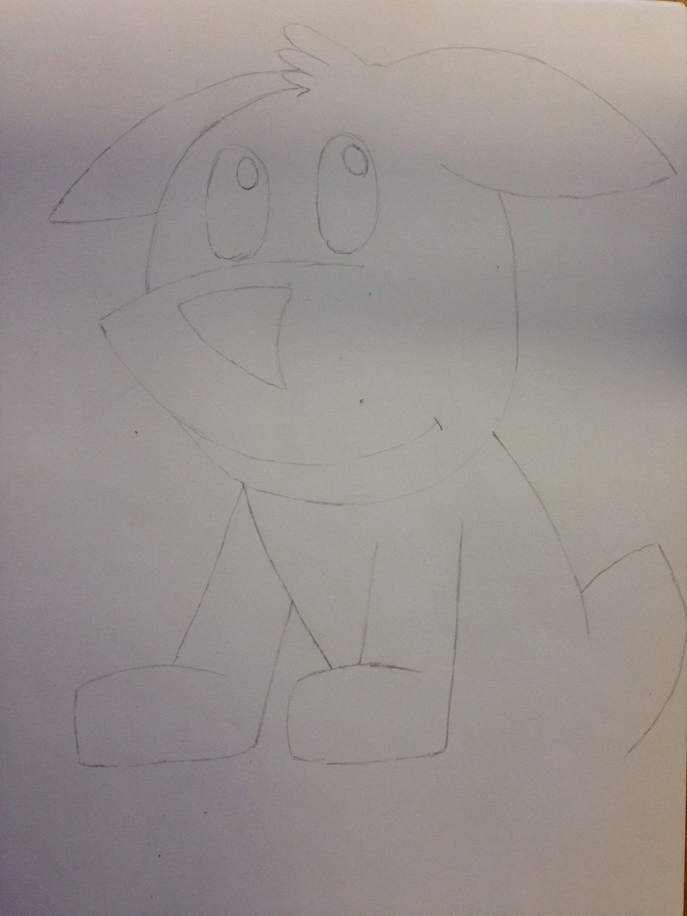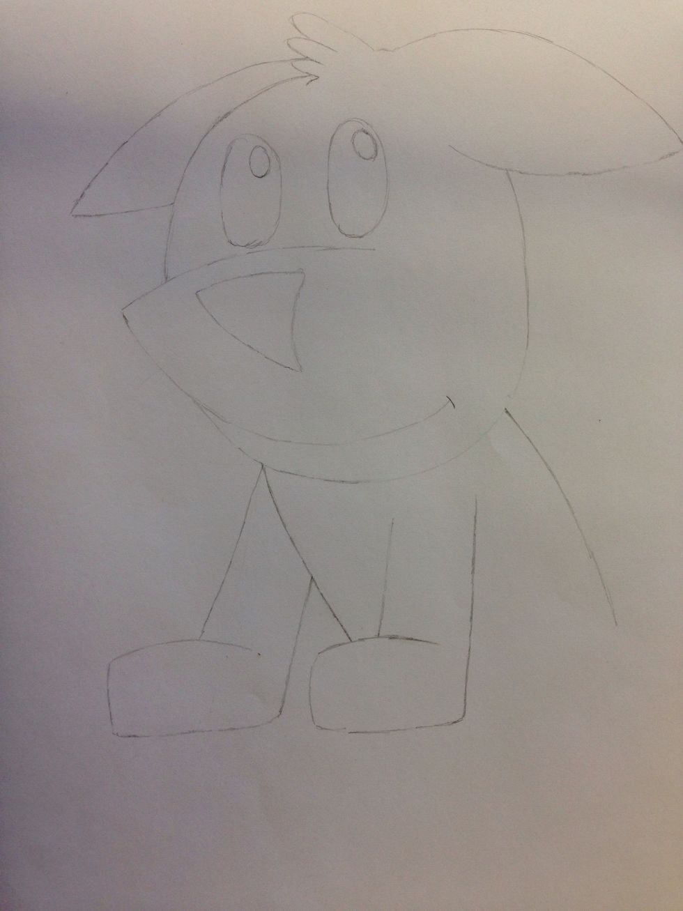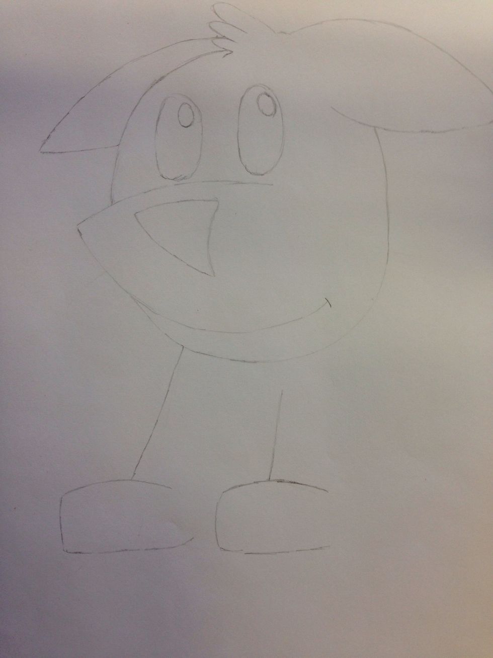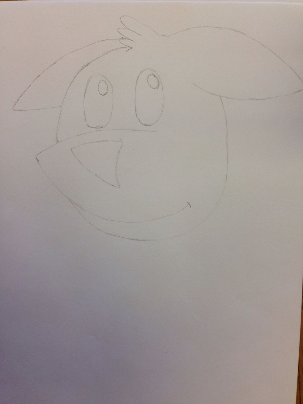 Step 4 : then after drawing the eyes and the nose , draw the ears by making an oval square shape on the top of its head. Then add a little bit of hair on top of its head.