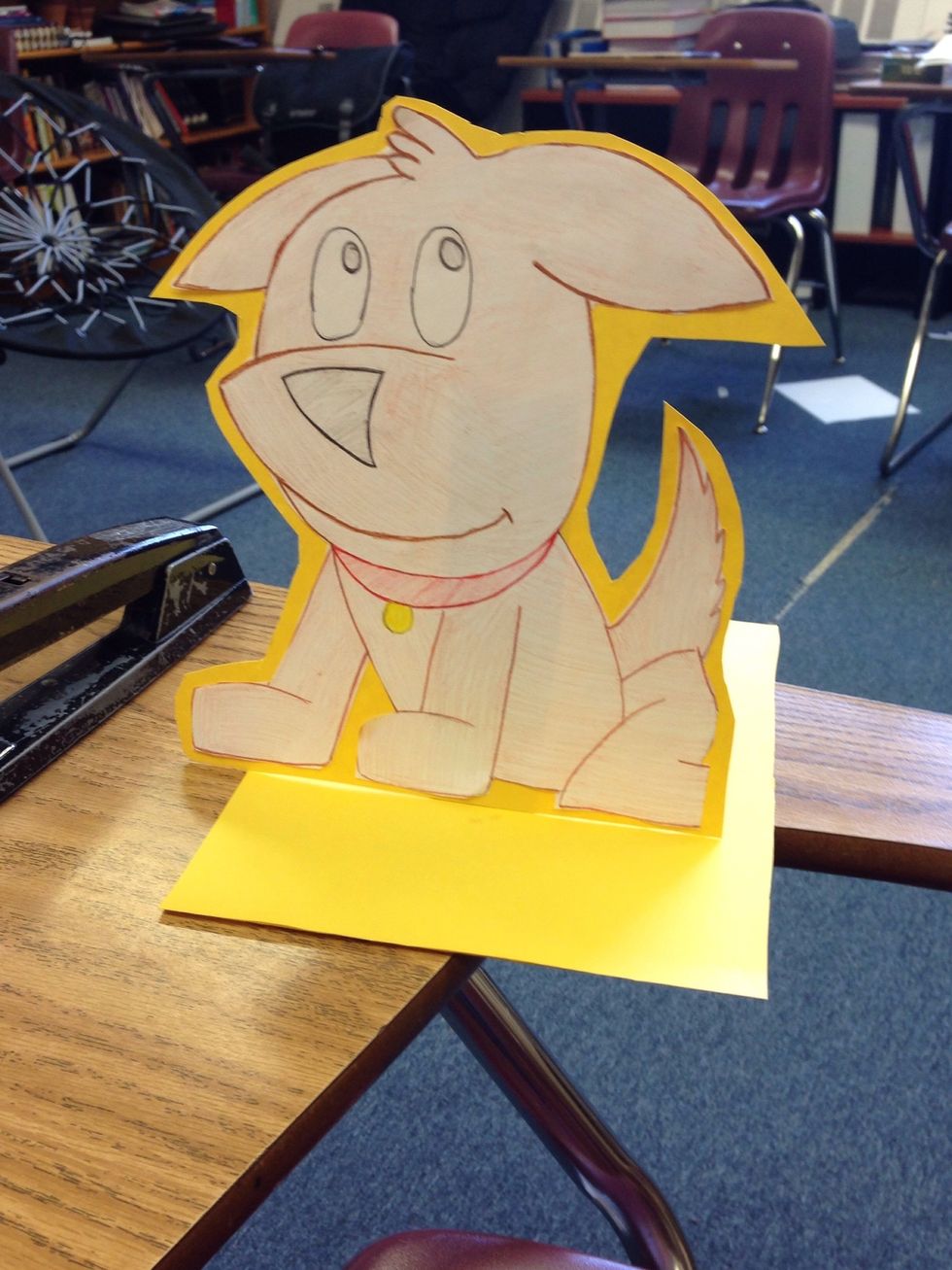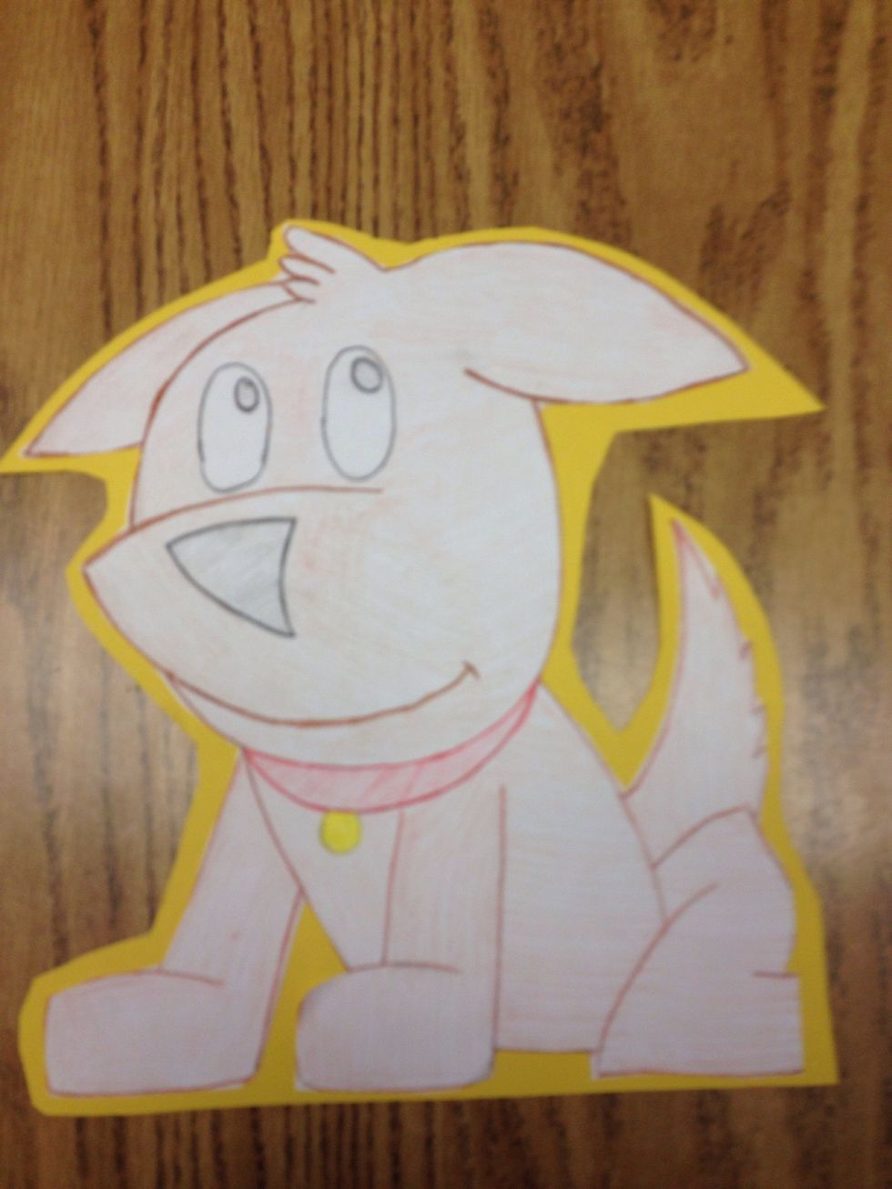 Step 10 Then glue it to a sheet of construction paper. Wait for it to dry, then cut the outline of the dog still showing some of the construction paper.