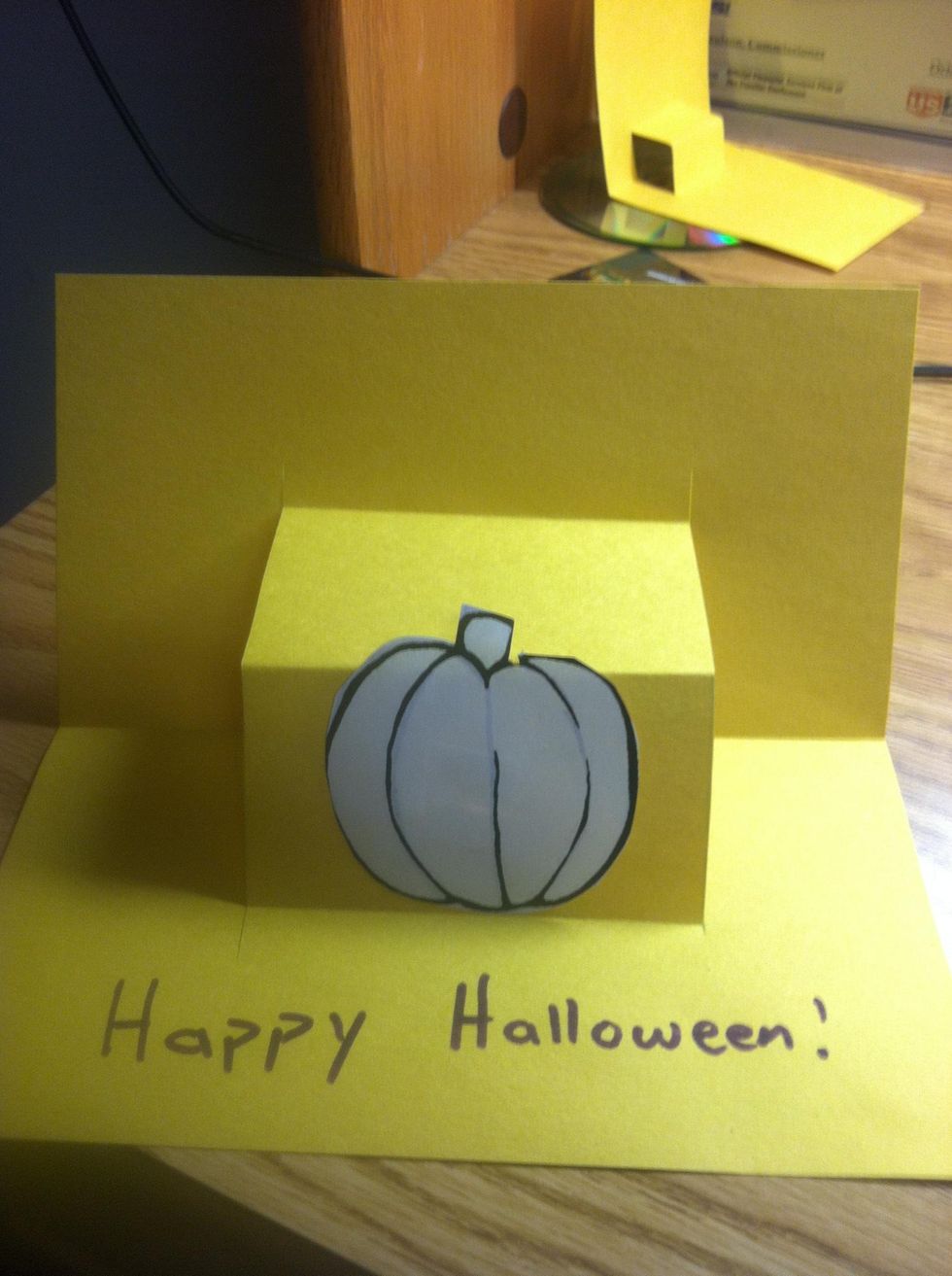 Attach your cut out pumpkin to the card with tape or a glue stuck.