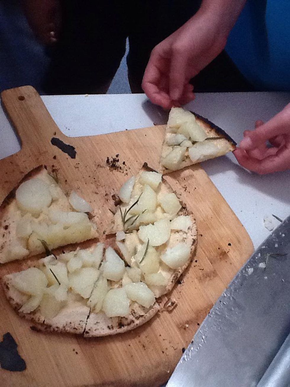 Oil2.0 Potatoes Salt (optional) Rosemary Pizza base Pizza Cutter or Knife Pizza cooker Potato peeler Microwave1.0 Hungry person