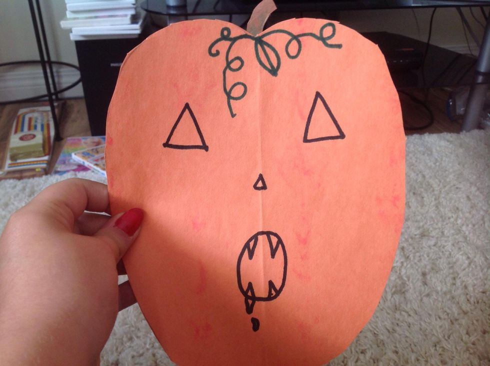 Now cut to the desired size.Take your Blake sharpieDraw the face.Take your green sharpie.Draw the leaves.Take your brown paper.And draw a stem.Then cut it out.Take your glue.Glue the steam on.