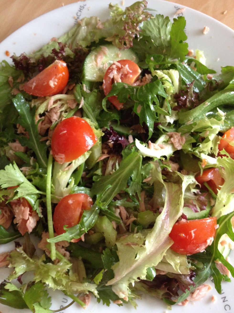 Mix together with the mixed leaf salad and drizzle olive oil over the salad