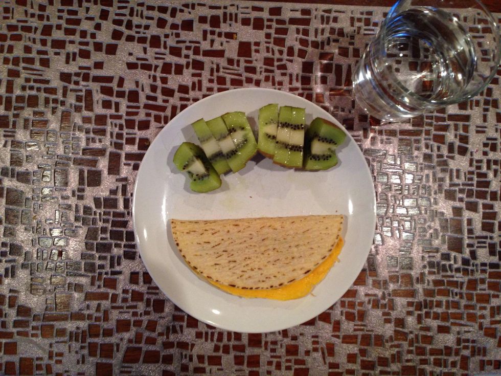 Flip after a few min. I folded mine in half so it would fit in the tortilla