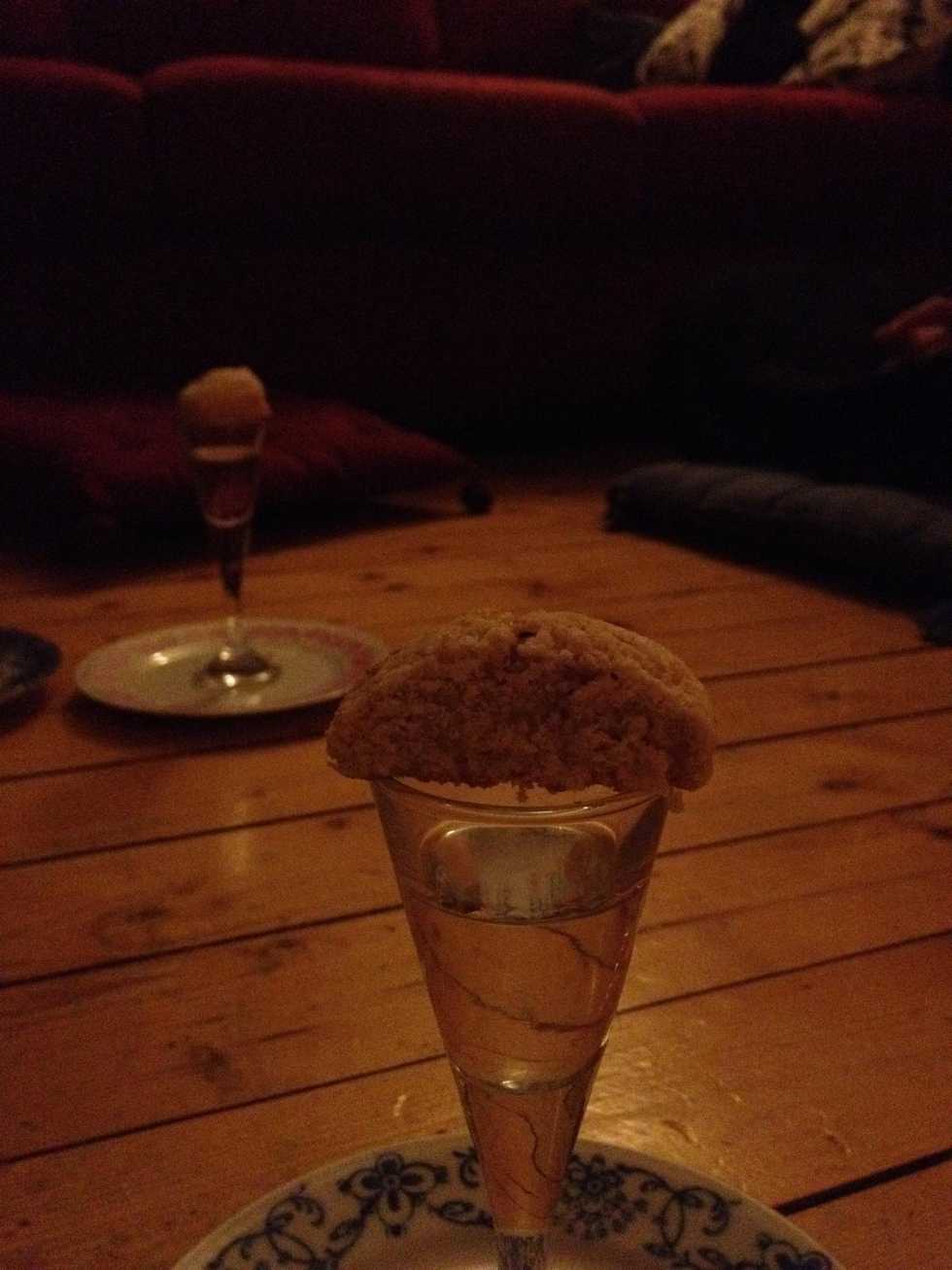Cut Mandelkubb in halfPour up you vodkaPlace Mandelkubb on glassDip Mandelkubb in vodka. Eat Mandelkubb. Drink Vodka. Enjoy.