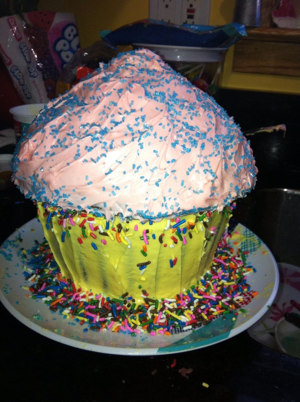 After I decorated mine. I wanted to use strawberries for the sides, but I was to lazy to go buy some.i used blackberries. Use what ever you find just be creative, hope you guys like it