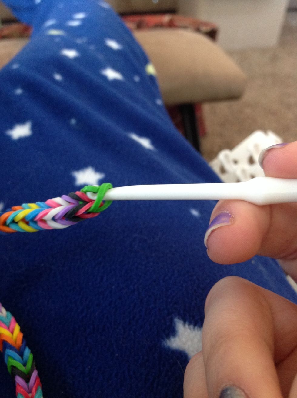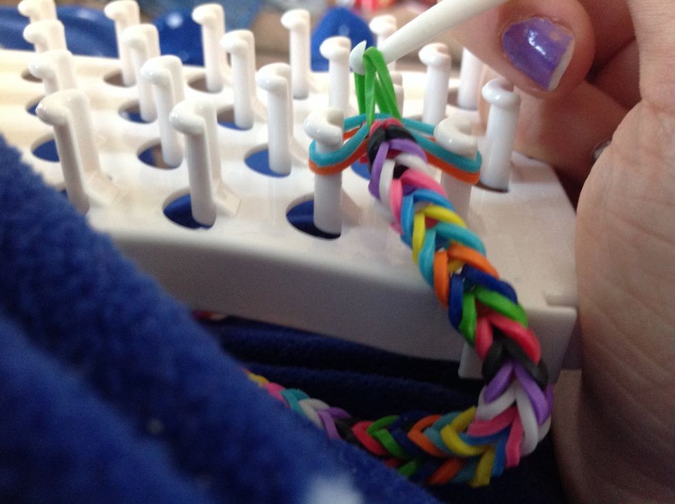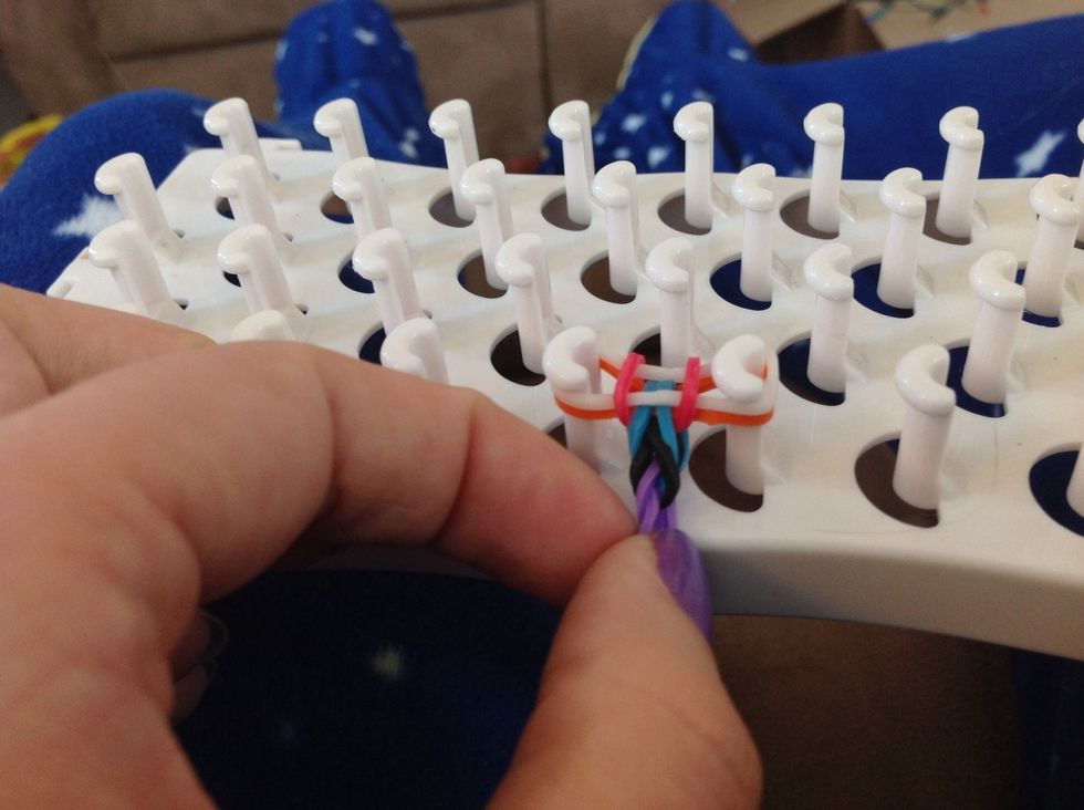 Add another band again (make sure you only have three at a time on the frame, like this picture)