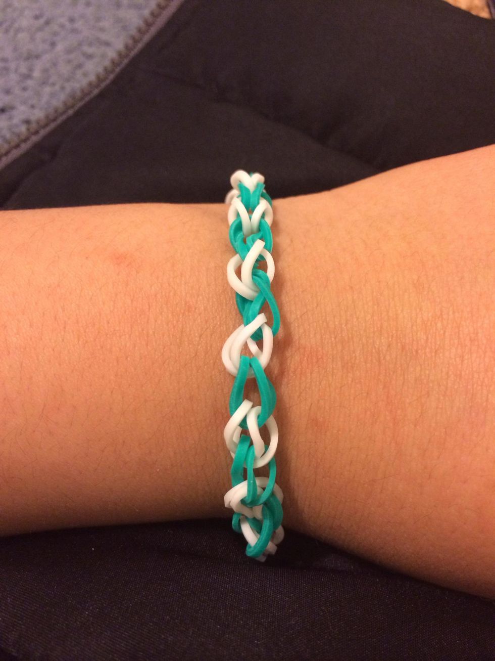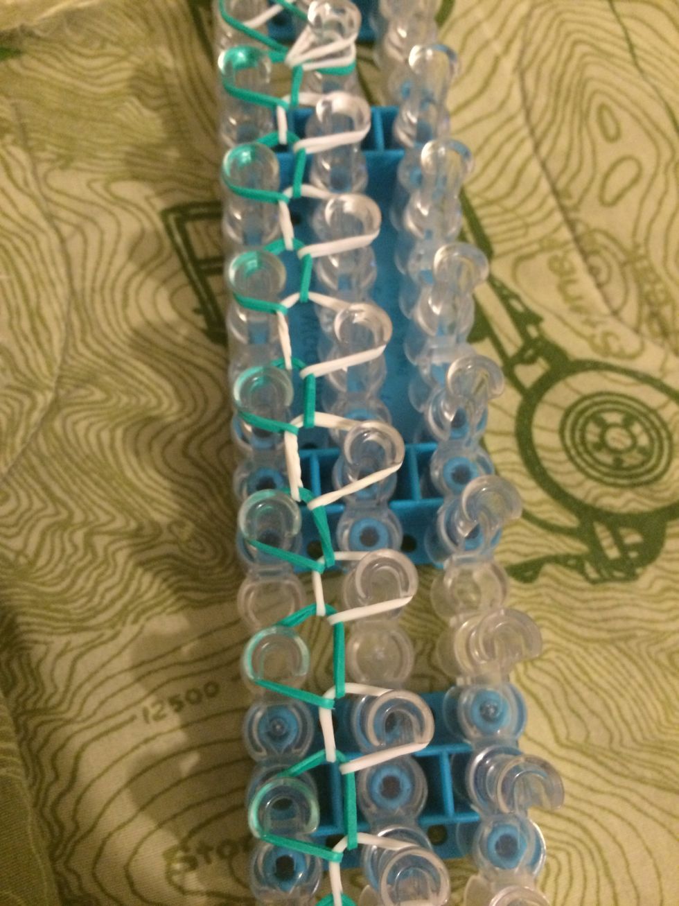 Pull back the 2nd band. Loop it up and over to the adjacent pin