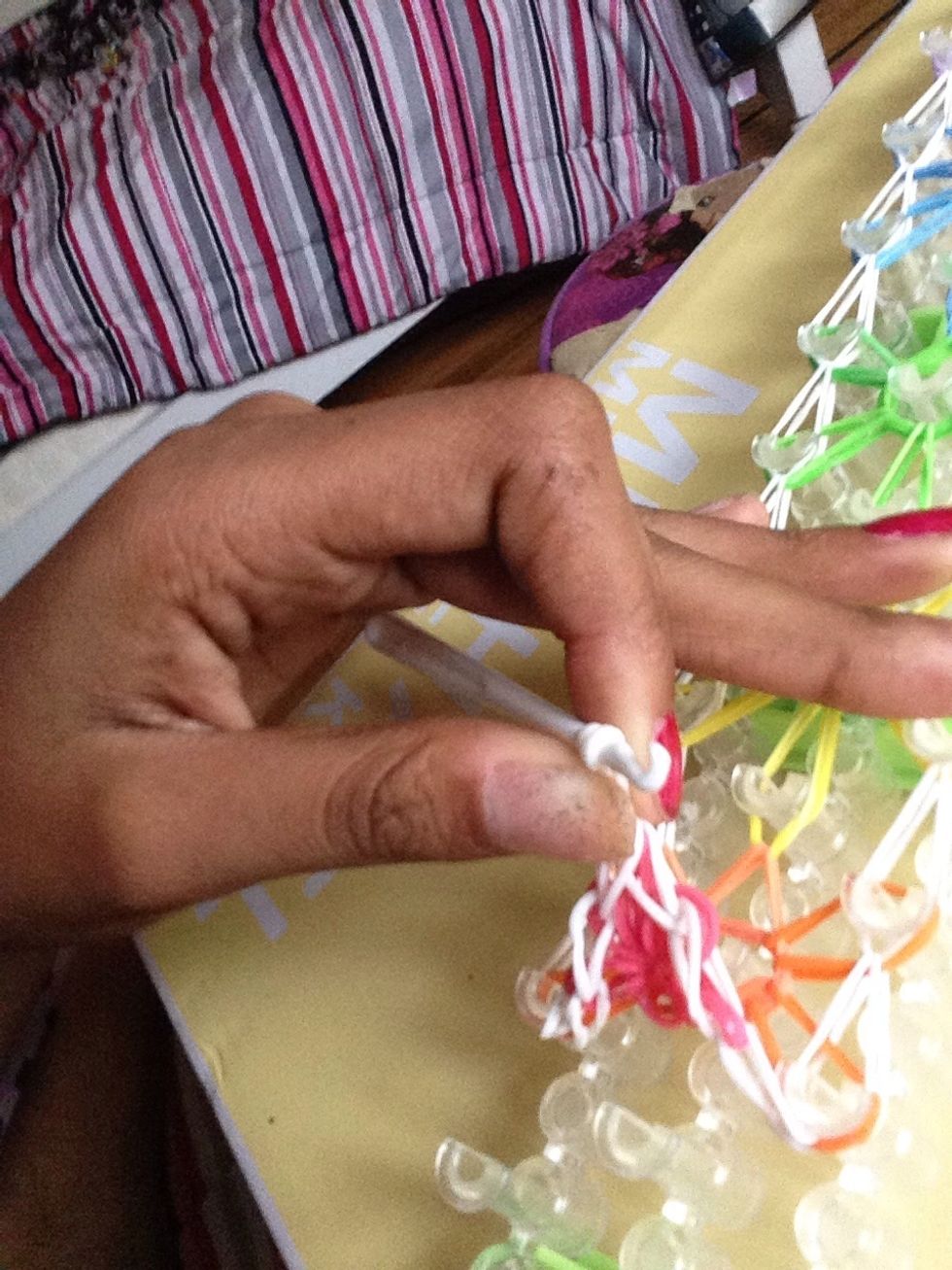 Push your hook through all of the bands at the top. Which would be color 1 the very first star you made.