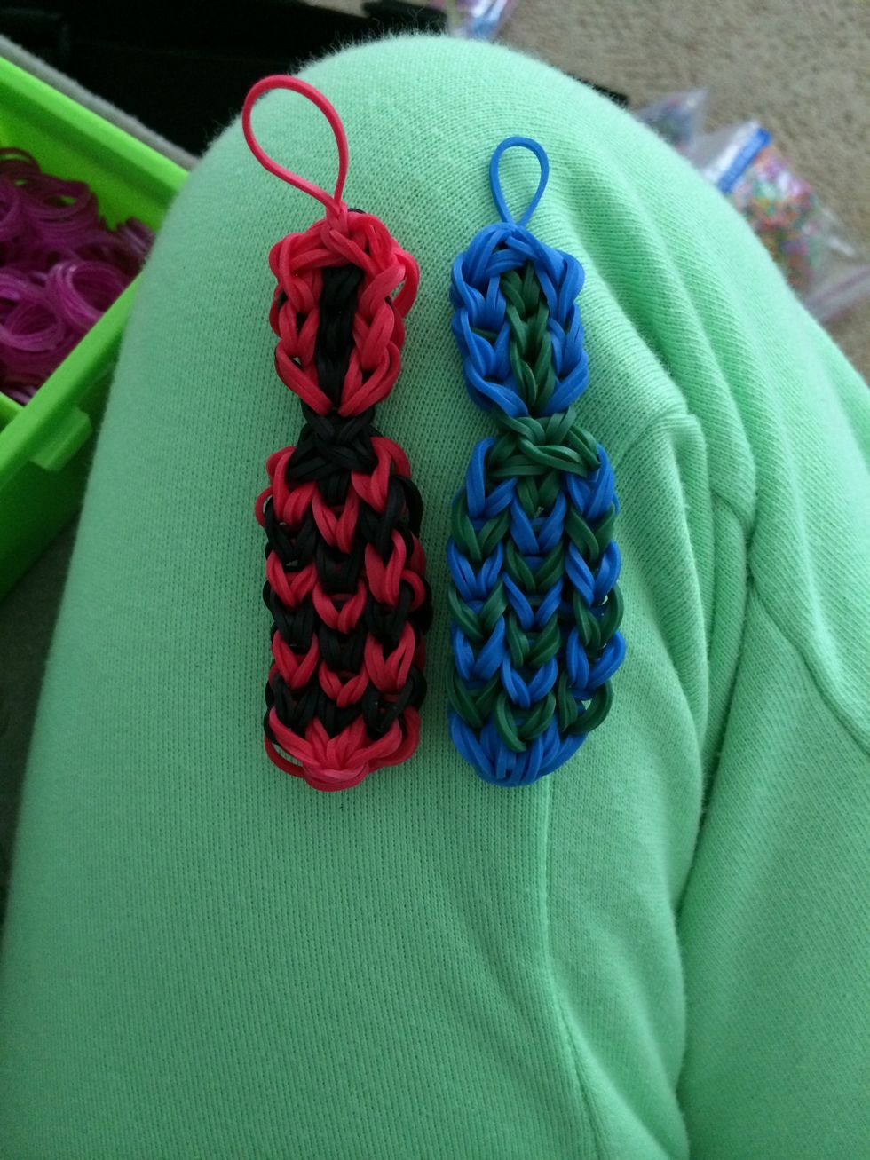 This will charm we will be using double bands. Grab 4 red rubber bands place 2 to the left and 2 to the right.