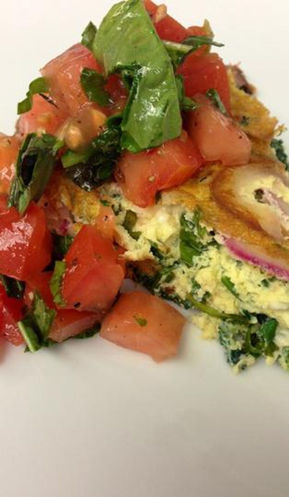 Meanwhile, combine the eggs, buttermilk, basil, feta, salt, and pepper flakes.