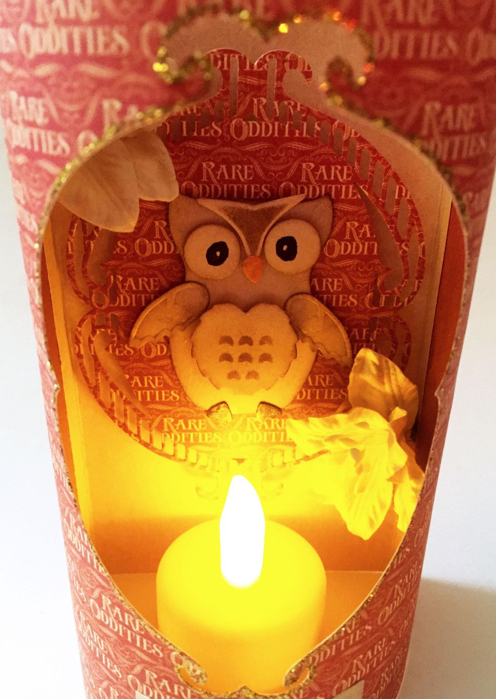 And there you go - the Night Owl Candle Cover. I'm using a LED tea light here. You can use normal candle but be very careful as the candle cover is made of paper.