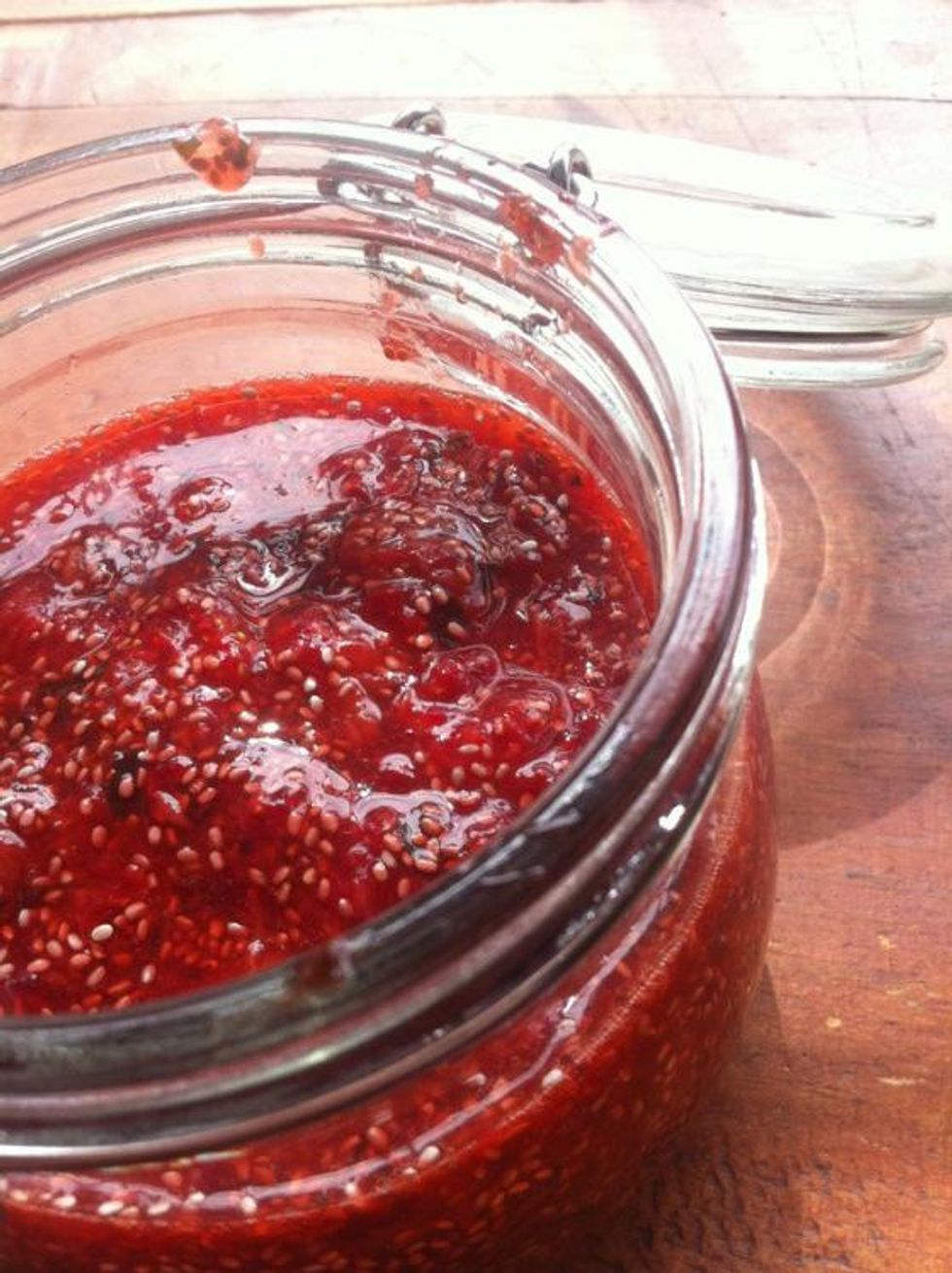 Crush starwberries with chia mix. / écraser les fraises avec le mélange de chia.