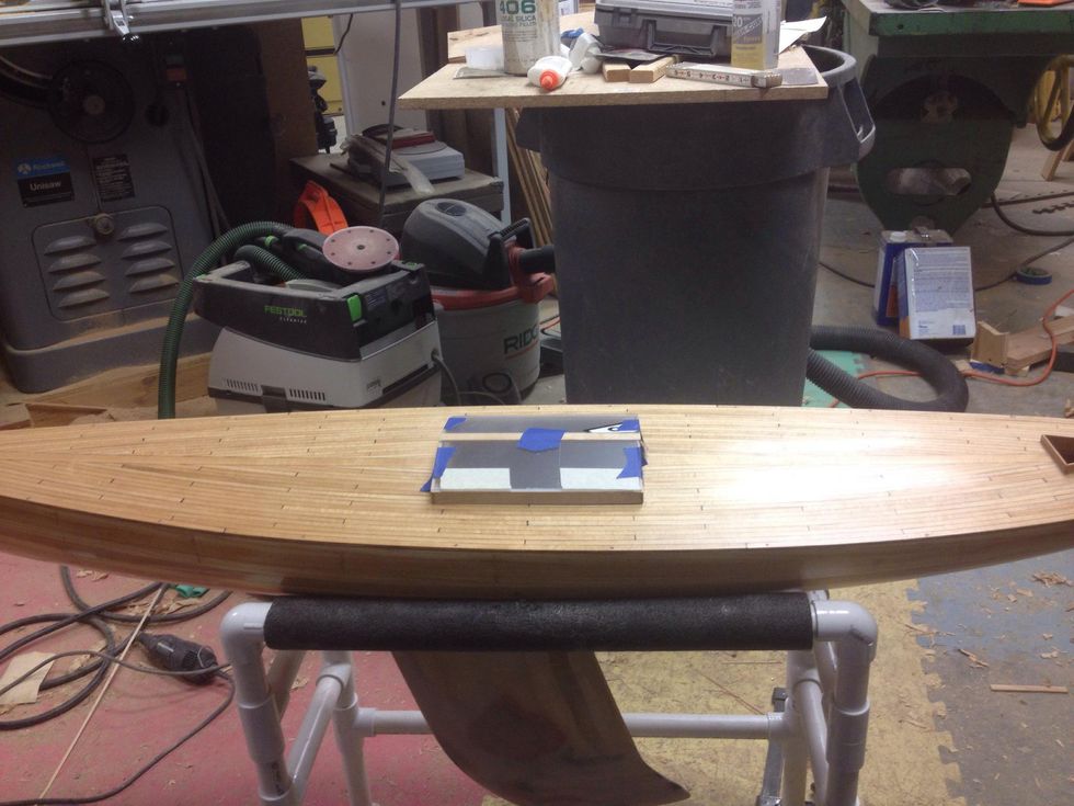 A PVC pipe building support makes a big difference for accurate work. It's important to have complete & easy access to the hull at this point.