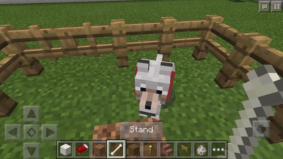 Press this button and a red collar should pop up around the dog's neck.you can press another button that also pops up- stand or sit
