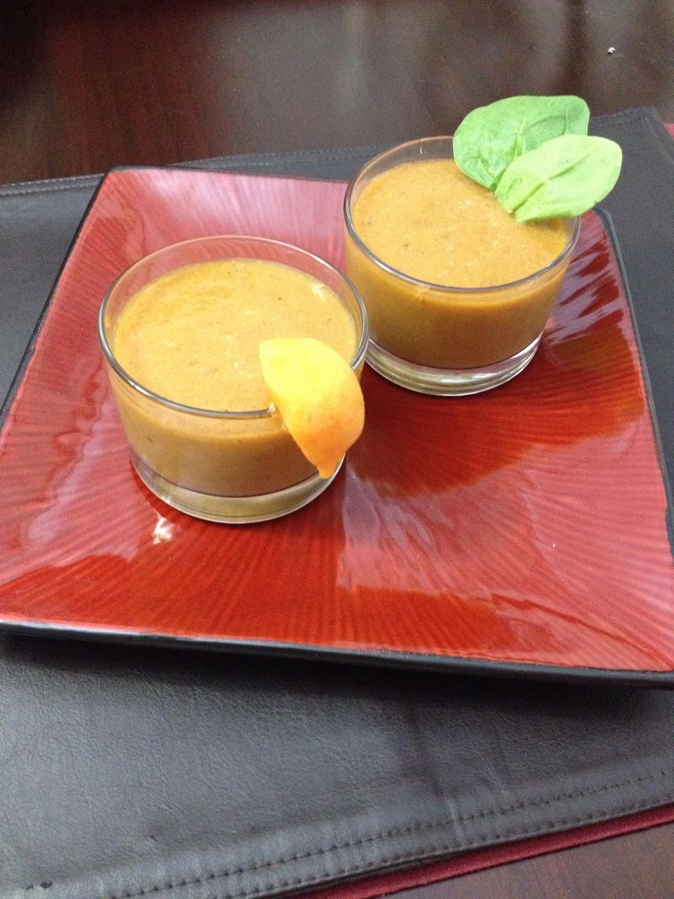 2 carrots 2 apricots 1 cup of spinach 1 cup of watermelon 1 tsp of hemp seed 1 pear 1 cup of water Ice cubes