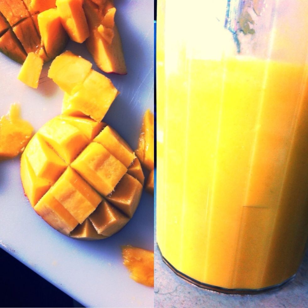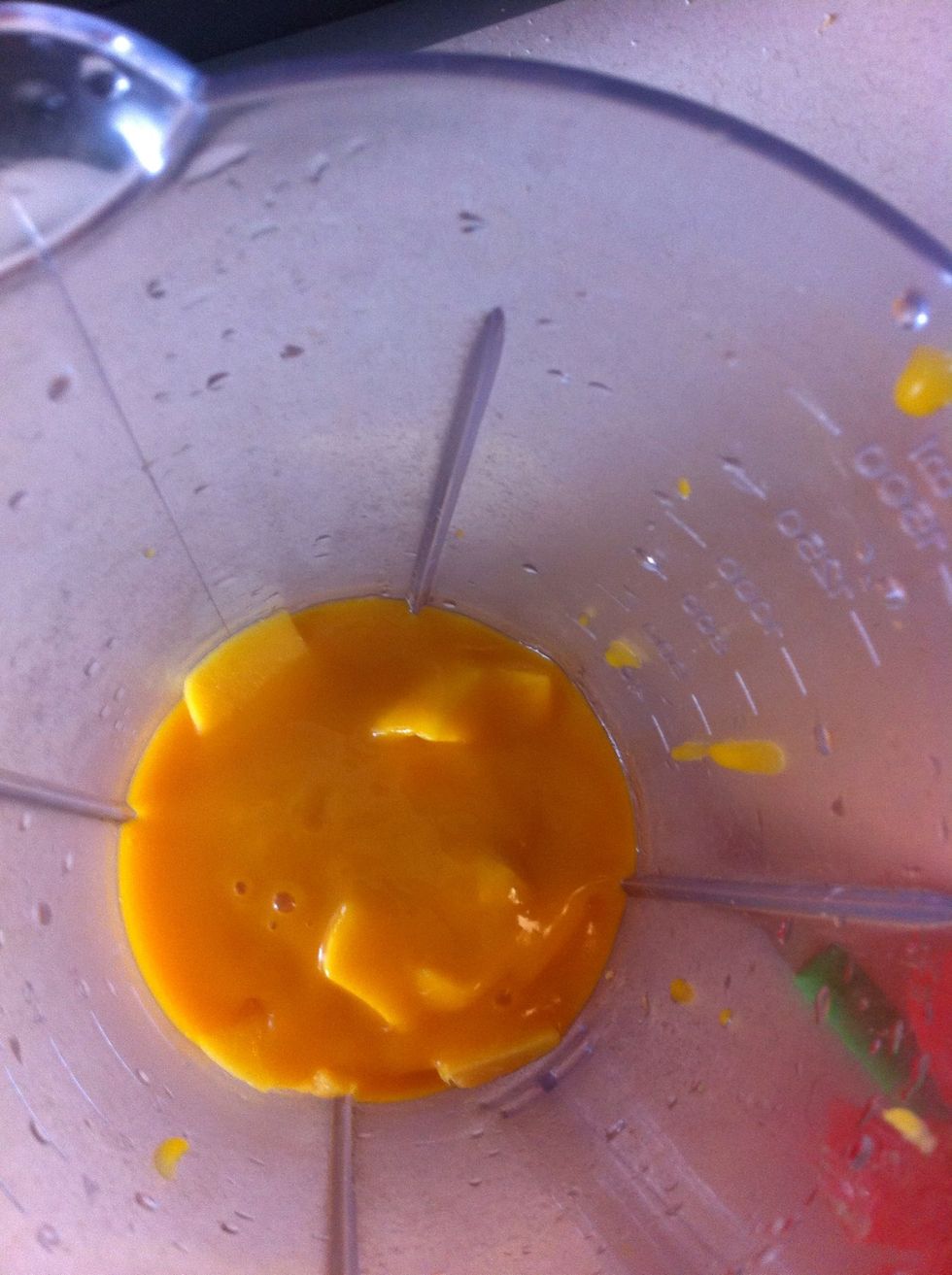 Here's how it should look. Mangoes and pulp on the bottom and the milk on top.