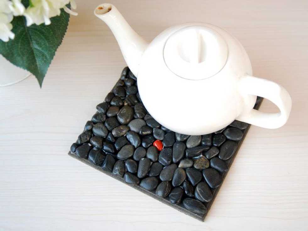 Glue the pebbles in random order while ensuring to place them next to each other and wait about two hours to dry.