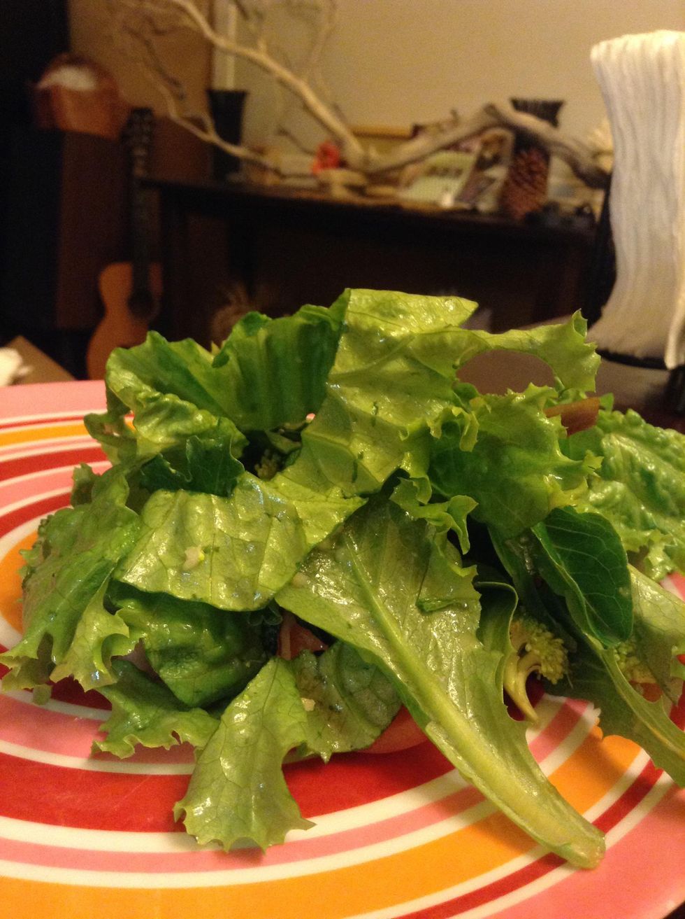 Put the dressing in, and give it a nice mix.