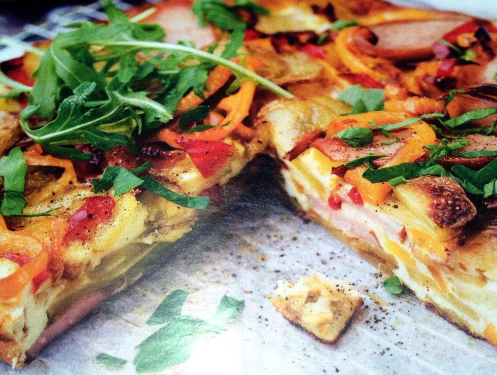 See to that there are several layers and that all the ingredients are thoroughly mixed. Then add the egg/milk mix.