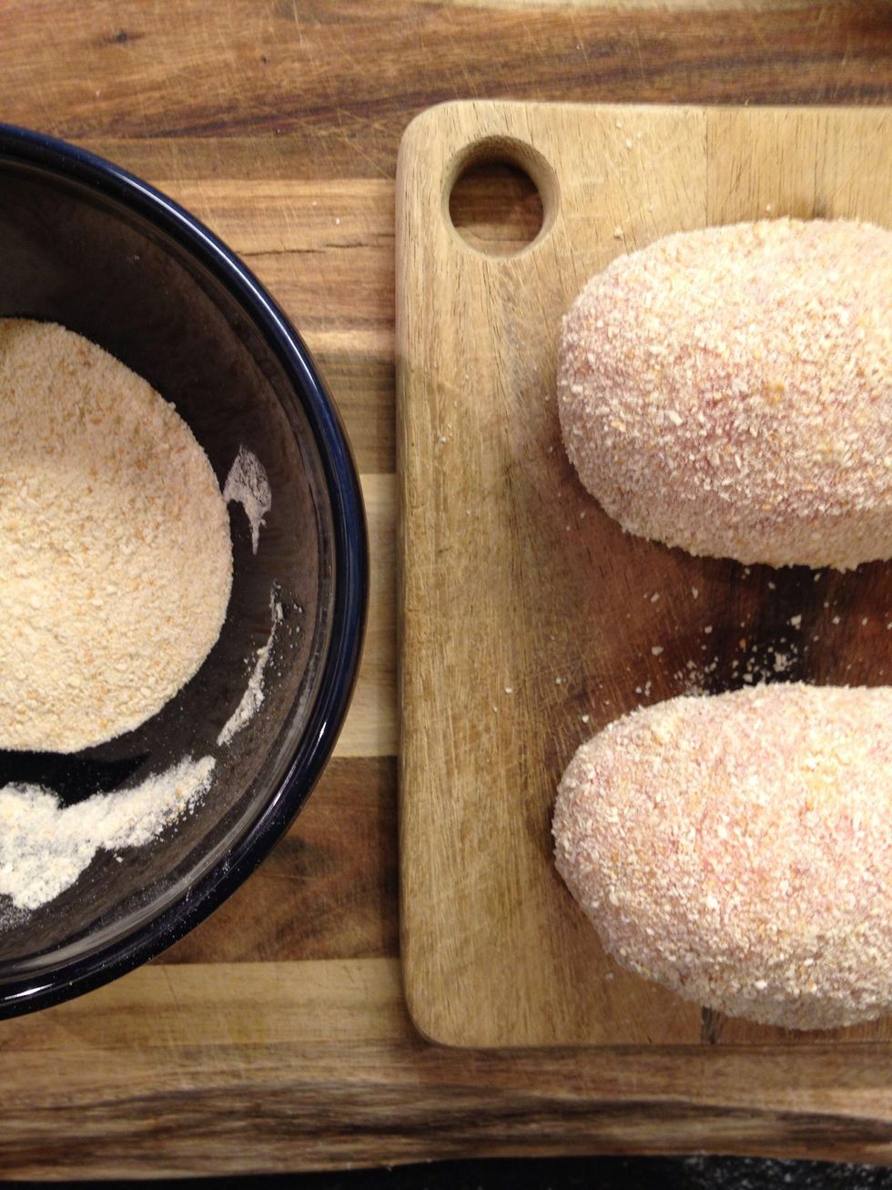 Breadcrumbs. Feel free to add herbs and/or spices to this mix.