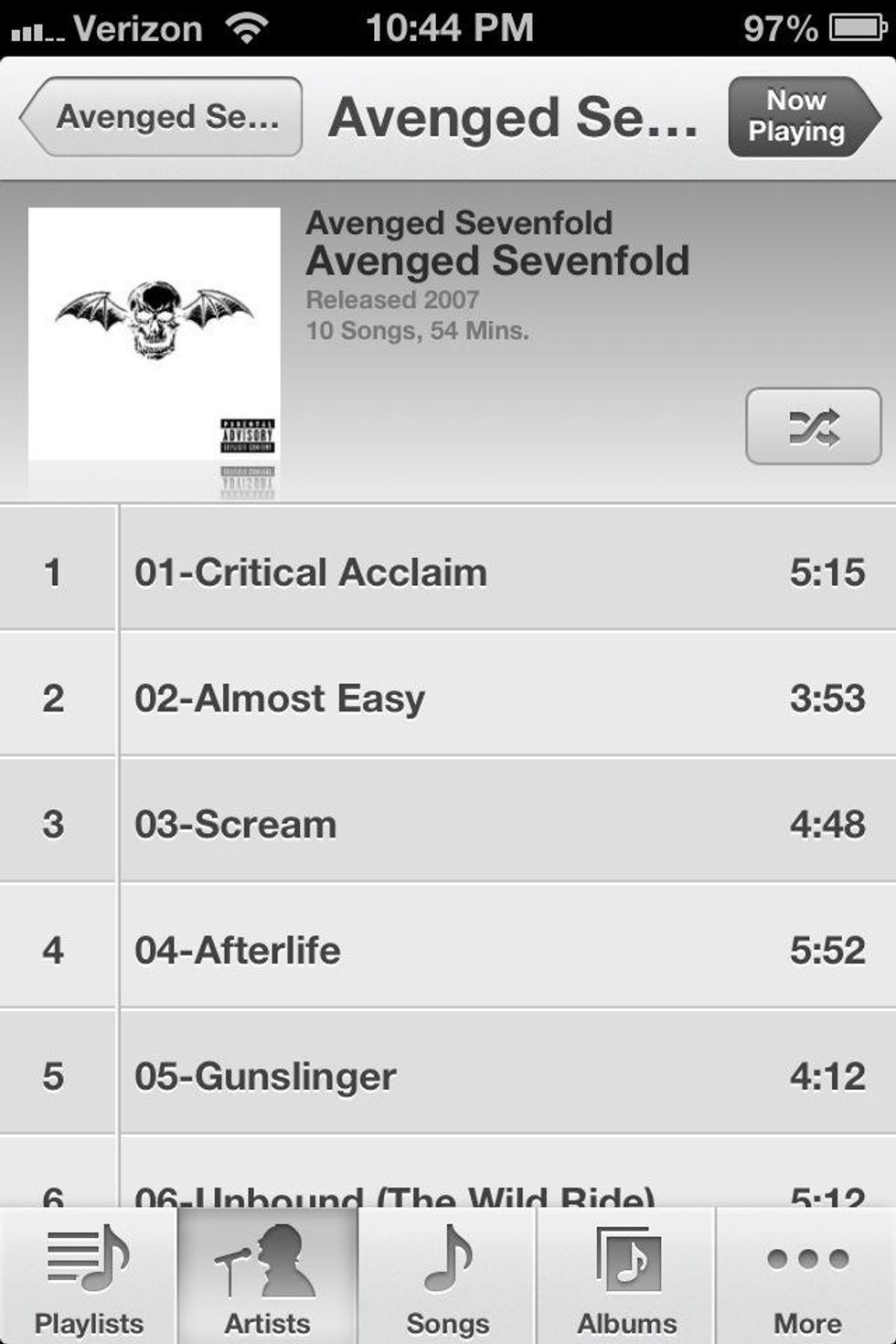 Here's a sample pic of an album in my iTunes. Simply press the power button and the home key at the same time and hold until the screen makes a bit of a flash. (This should only take about 1 second)