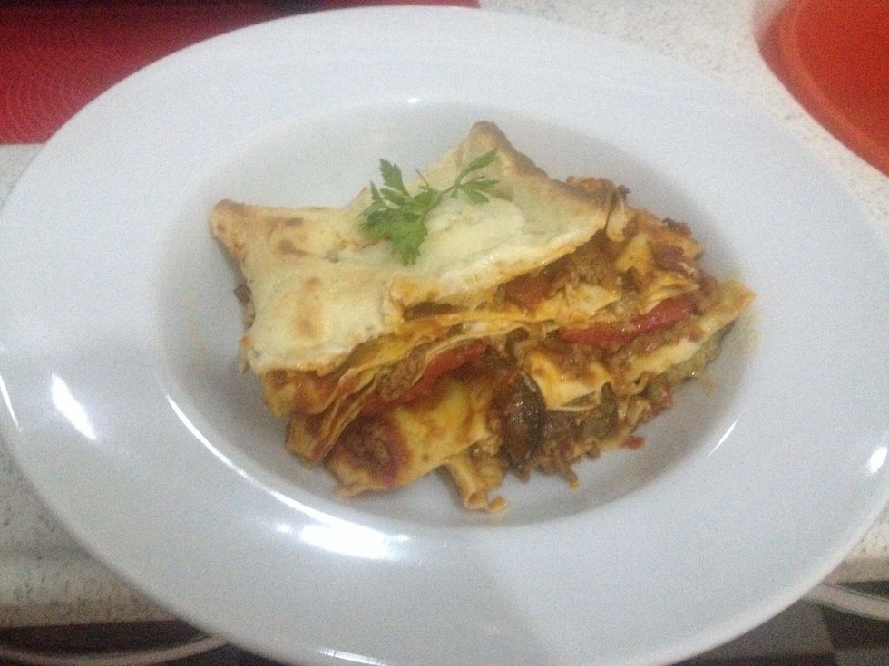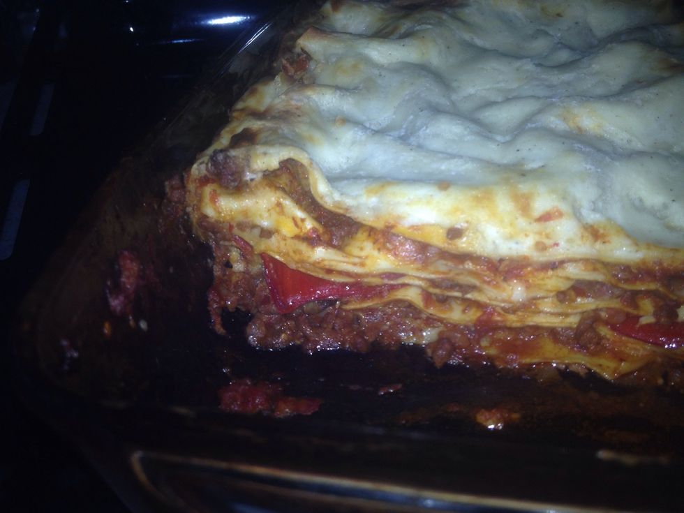 Repeat Another layer of pasta sheets with mince and more vegetables