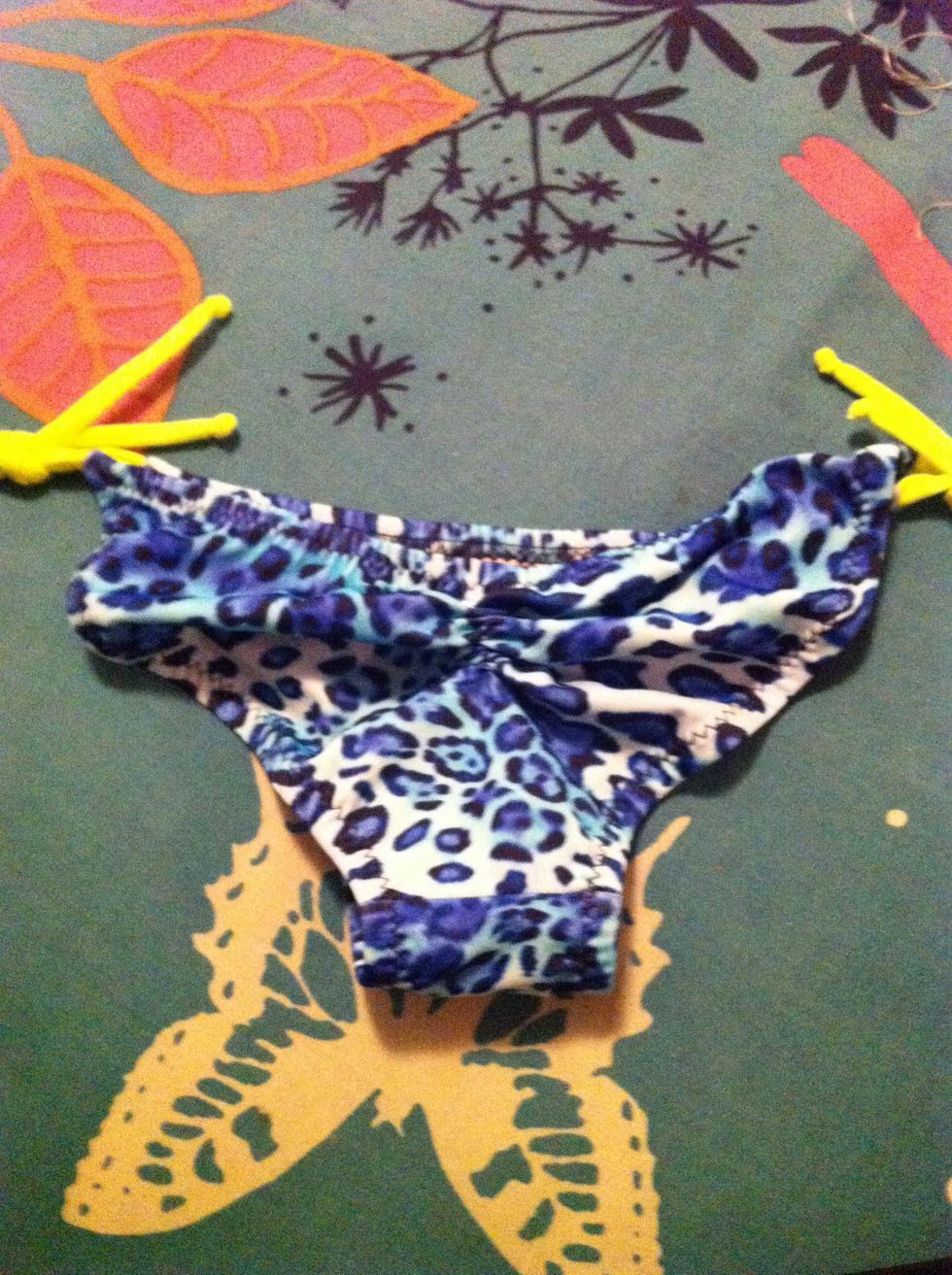 Turn your bikini bottoms inside out. I keep the tag in still to help me keep track of the exact middle of the bikini.