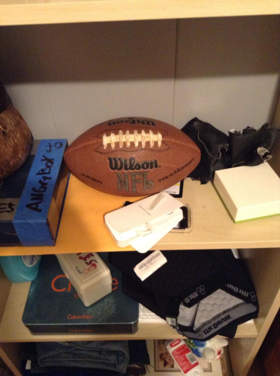 Turn it around..and show the cool part of the football..make it look like a decoration like i did..you cant even tell that i cut it. NOW NOBODY KNOWS WHERE YOUR MONEY ISπ