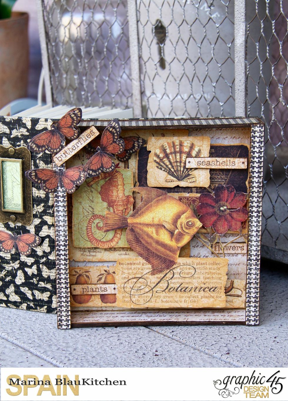 Use double-sided tape on the back side of the shadow box and adhere on the cover of a Graphic 45 Square Tag&Pocket Album.