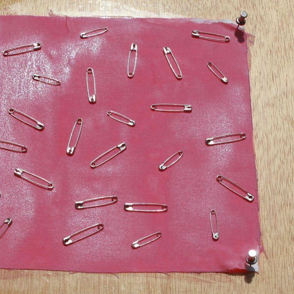 Pin down the edges of your fabric to prevent curling during exposure. Be mindful of the placement and angle of your pins- they may cast shadows on your print.