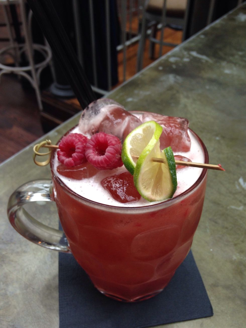 Throw in 6 whole raspberries and 15ml (3/4oz) of fresh orange juice.