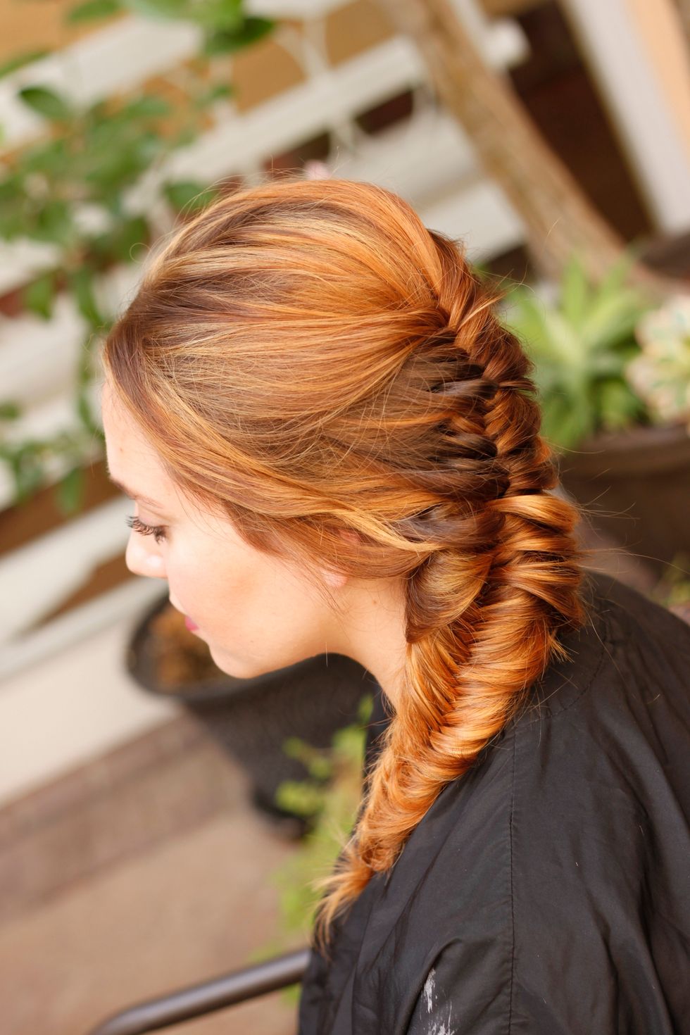 And here you have it. Side braids are really in for Fall right now, and a fishtail makes it look even more special. It's great for showing off colored or layered hair.