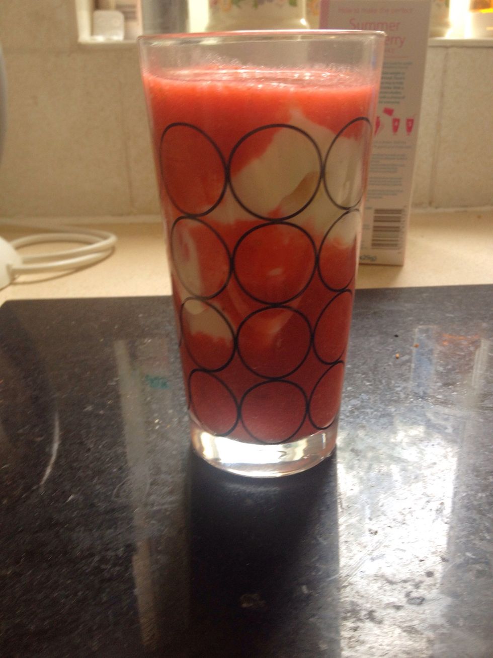 Tip a generous amount of smoothie into the glass followed by a tablespoon of yoghurt..