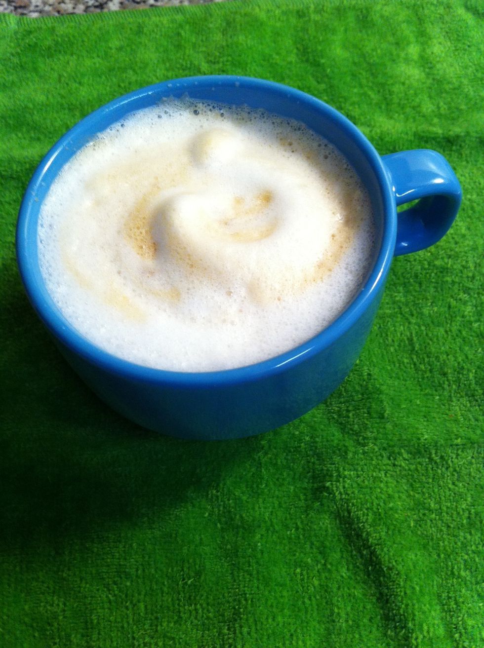 Enjoy. Sweeten to taste. (Hint you can use powdered sugar when making the froth) If you want to be more traditional you draw the espresso in a separate cup and add the frothed milk on top.