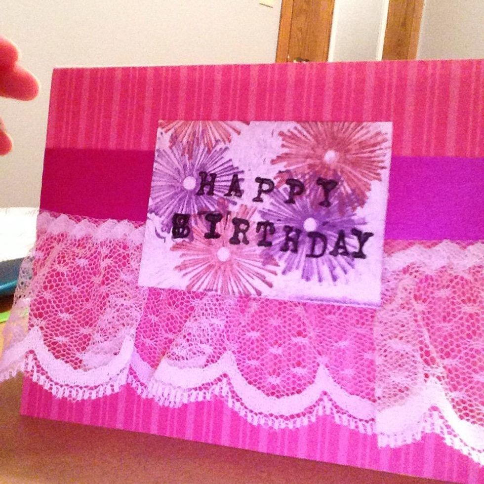 Cut a piece of ribbon and a piece of lace that are the same length as the length of the card.