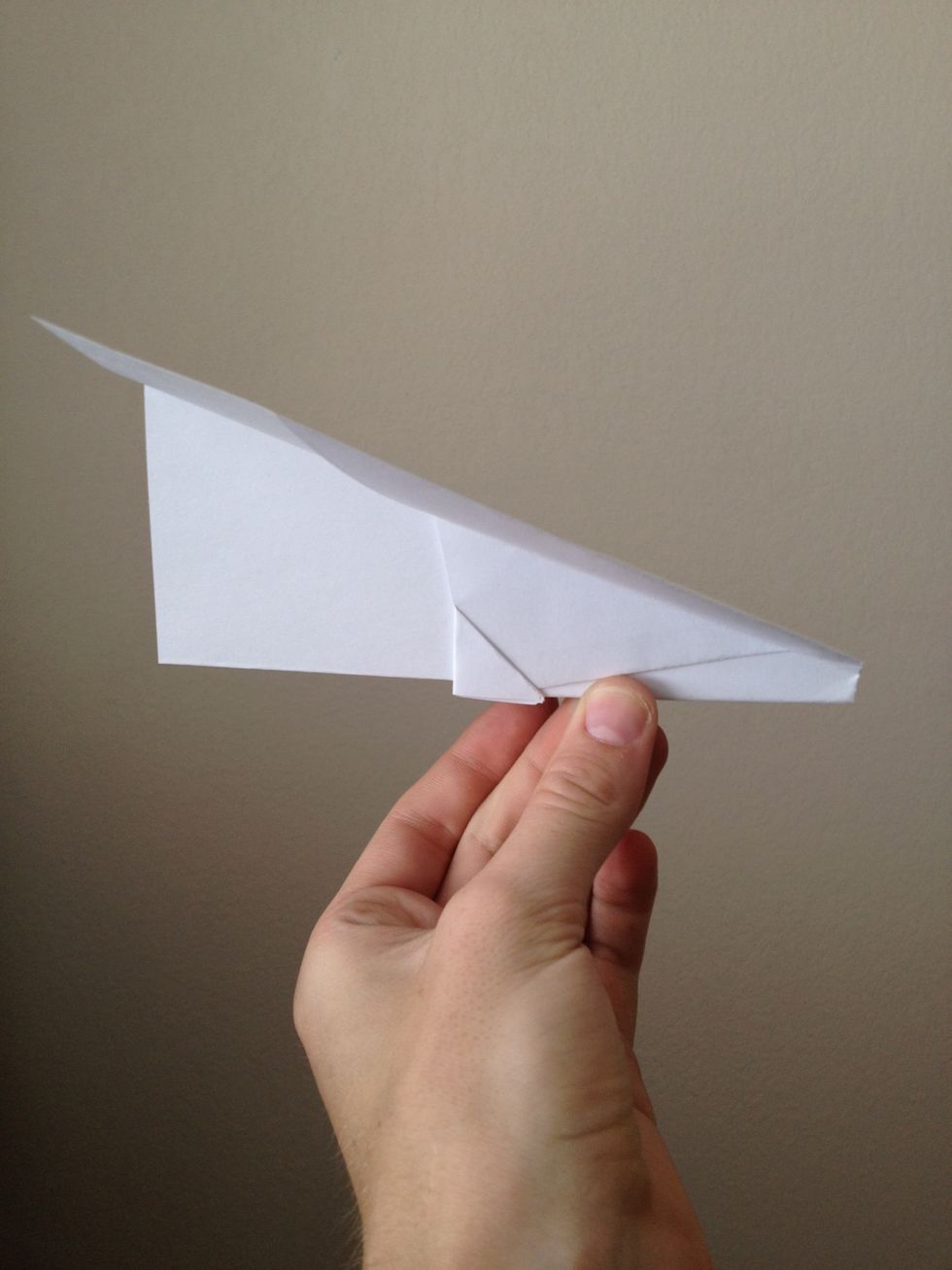 Fold down top edges to the midline so you get 2 right triangles at the top