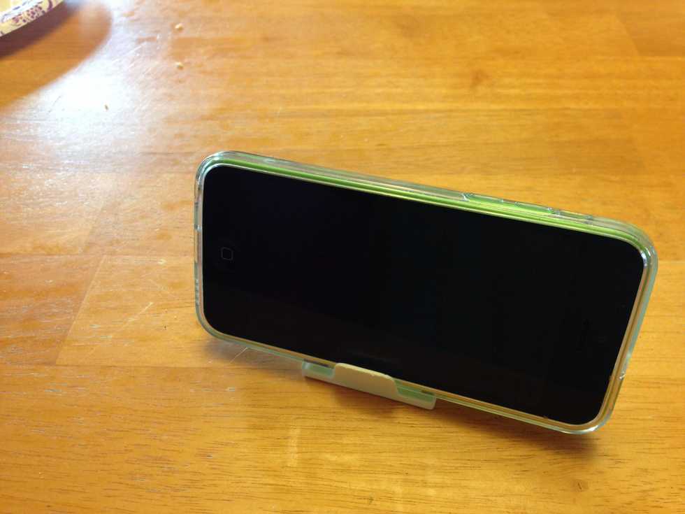 Get a common dental floss container. Any brand will do.Open itInsert phone. Done! Holds phone at the perfect angle. Great for traveling!